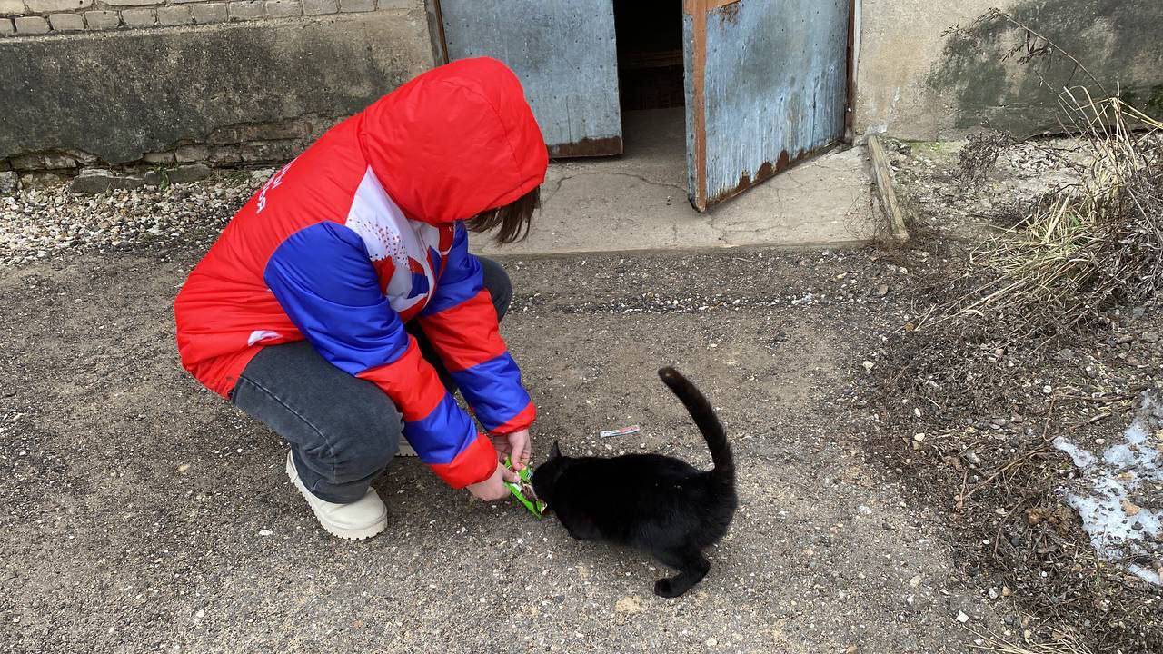 Волонтёры из Космодемьянского накормили бездомных кошек