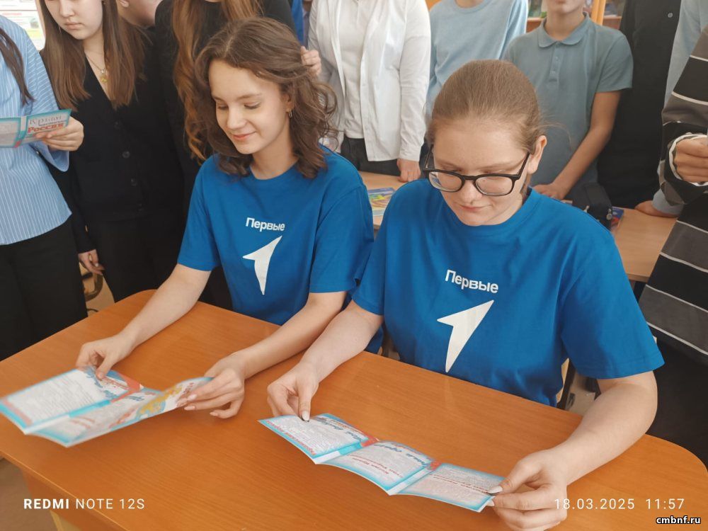 В знаменательный для страны день присоединения Крыма к России сотрудники библиотеки ул. Шибанкова, 24 провели патриотическую акцию в средней школе № 4 имени В.В. Завадского для учащихся 6-7 классов.