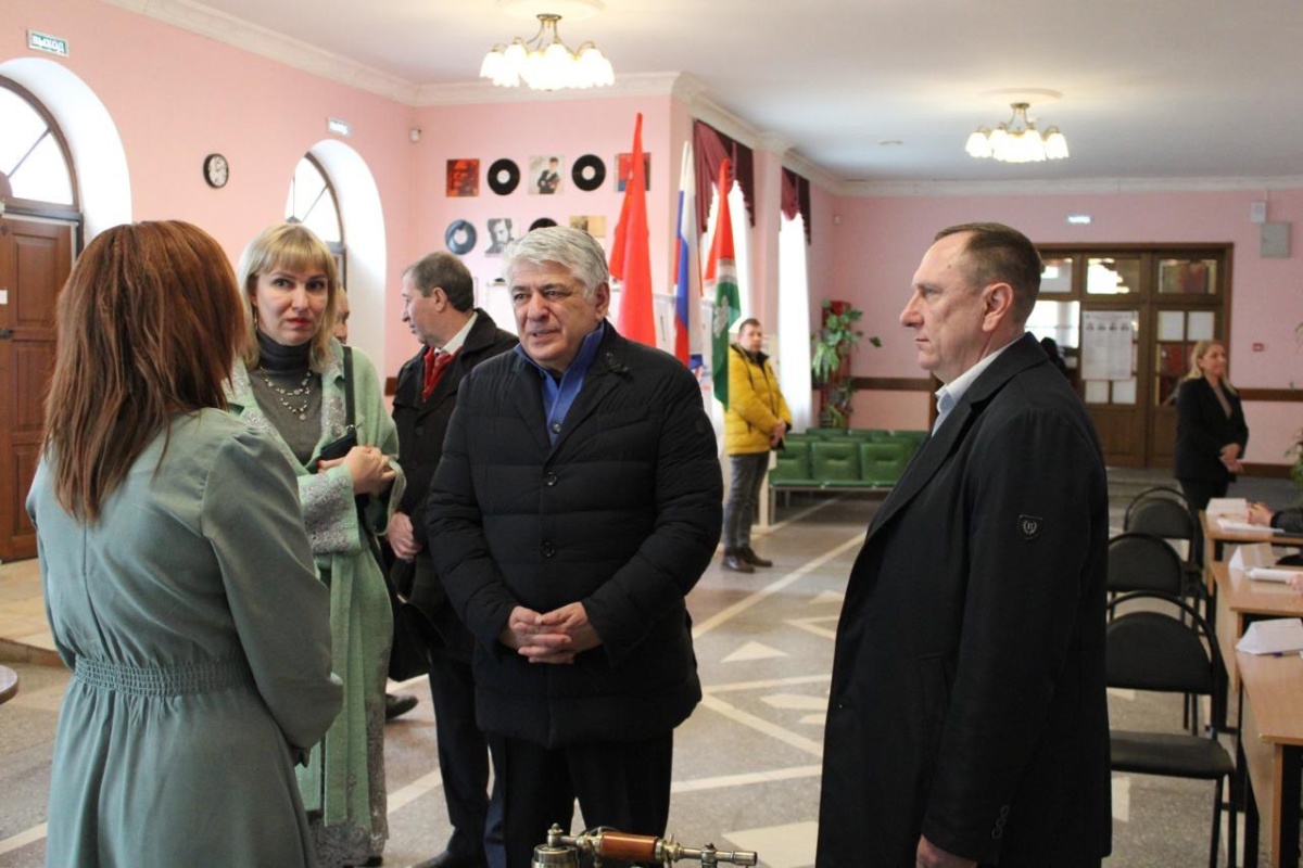 Экватор второго дня голосования на выборах Президента России — пройден Лидеры общественного мнения, депутаты Государственной Думы Отари Аршба и Денис Майданов совместно с представителями местной власти,