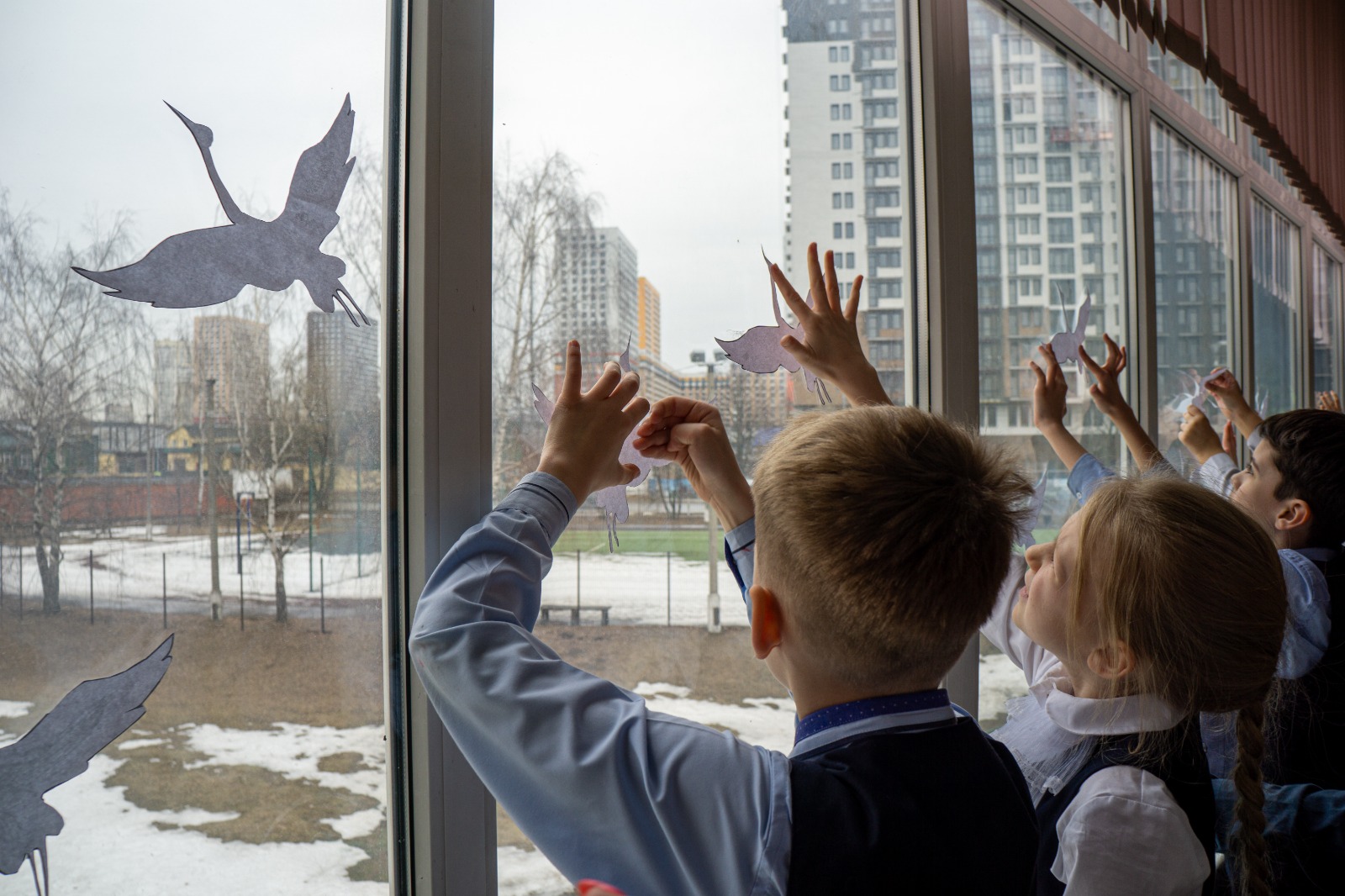 Он отметил, что изображения белых журавлей и цветов крокуса украсили окна домов, квартир, офисов, торговых центров, спортивных и культурных учреждений. Появились они на электронных экранах и рекламных щитах.
