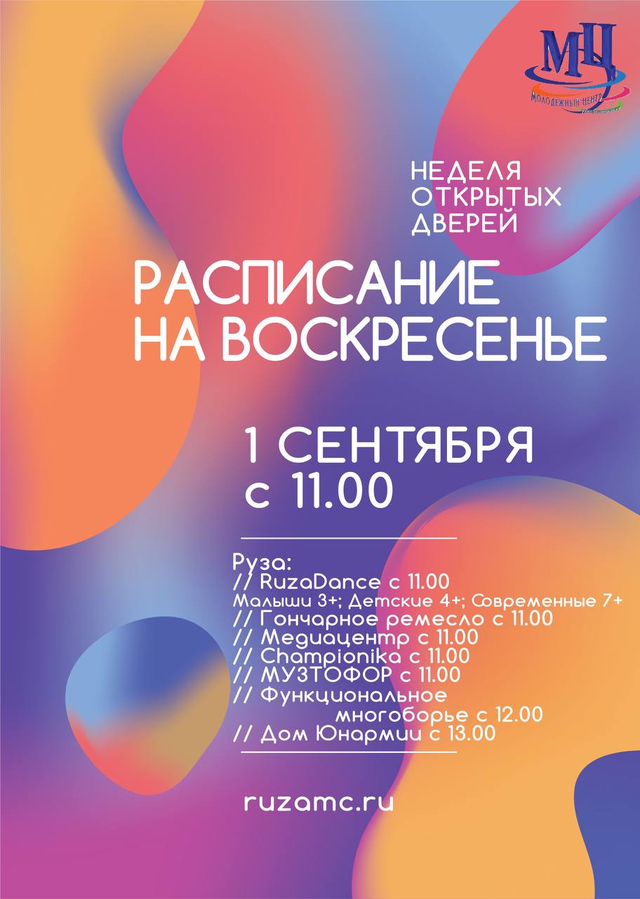 С 1 по 8 сентября Молодежный центр Рузского городского округа проведет неделю открытых дверей. Это уникальная возможность для жителей округа узнать больше о деятельности центра, ознакомиться с программами и услугами, которые он предлагает.
