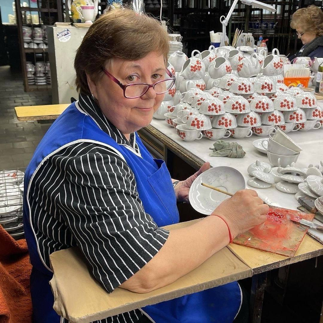 Почти 50 лет Т.А. Боевая расписывает фарфор на Дулёвском фарфоровом заводе