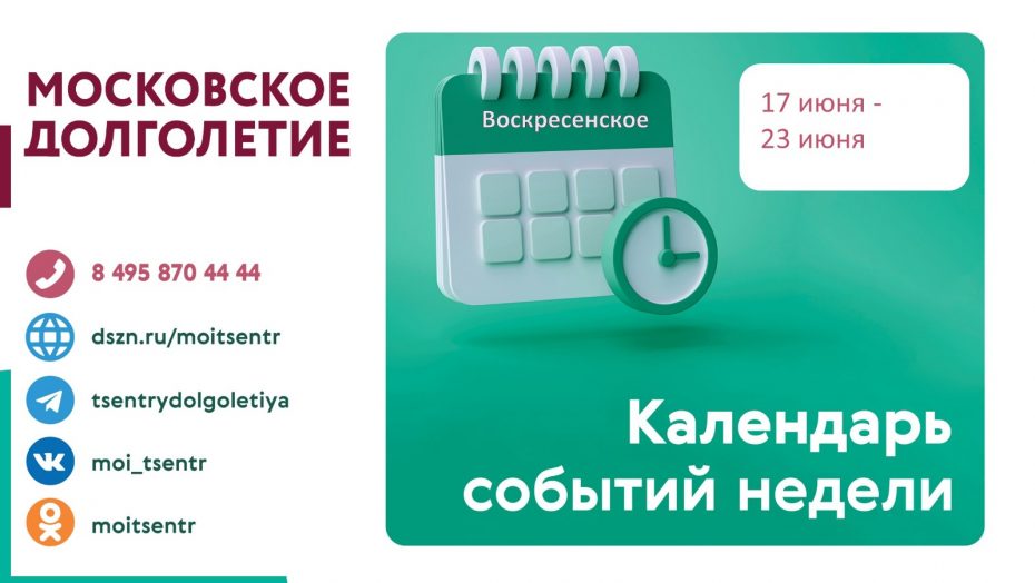 Расписанием мероприятий на неделю поделились специалисты Центра Московского долголетия в Воскресенском с 17.06.2024 — 23.06.2024