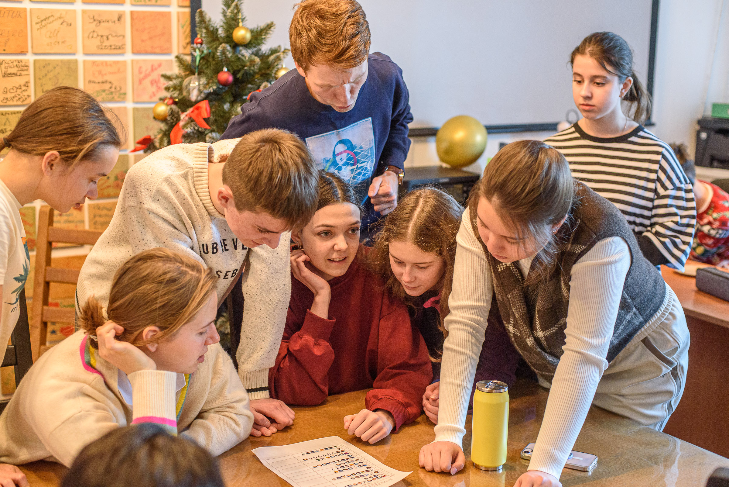 Затем школьники отправились печь рождественское печенье вместе с директором «Байтика» Дарьей Калабуховой. И это не всё: были и музыкальные посиделки (от «Бременских музыкантов» до «Наутилуса» и «Кино»), и настолки, и «боталка» – комната, где можно подучить с преподавателем то, что непонятно.