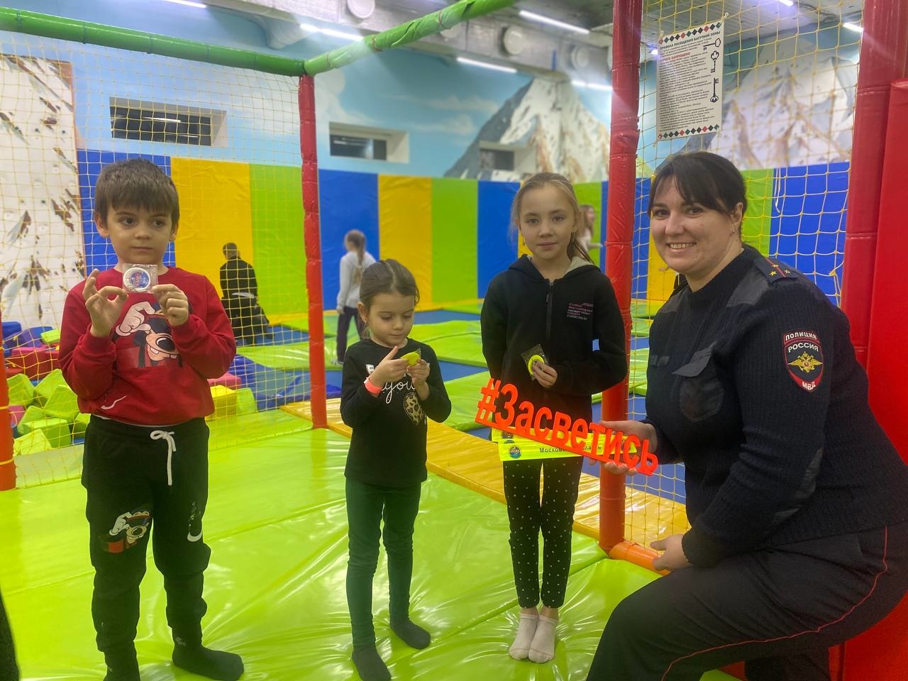 В праздничные дни перед, в рамках мероприятия «Зимние каникулы», полицейские рассказали о необходимости использования световозвращающих элементов в одежде, показали, какую важную роль они несут в жизни пешеходов. Также обсудили с посетителями вопросы обеспечения безопасного поведения на дорогах, напомнили о правилах перехода проезжий части.
