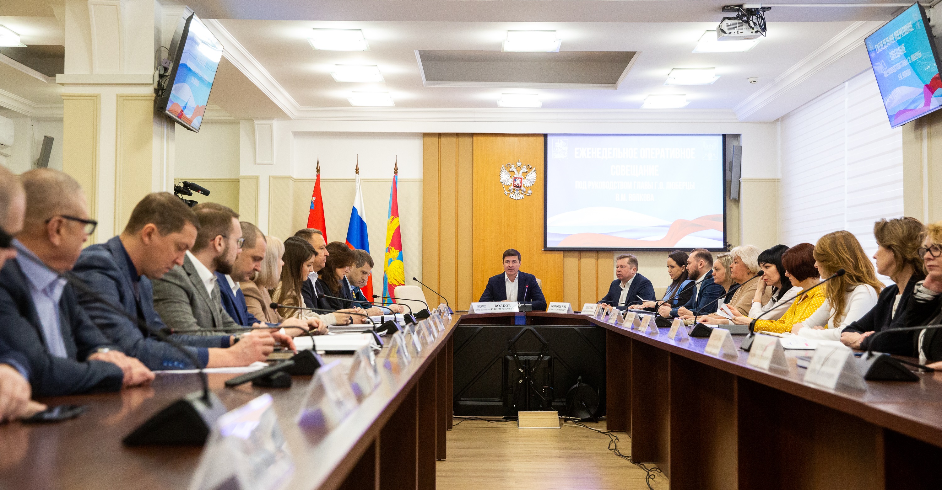 Во вторник в администрации городского округа Люберцы состоялось еженедельное оперативное совещание с участием руководителей управлений и ведомств. Провел его глава муниципалитета Владимир Волков.