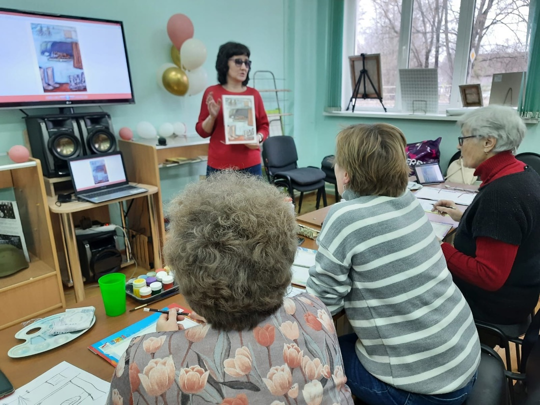 Участники передали атмосферу домашнего тепла и уюта – изобразили милого кота, спящего на русской печке. За основу взяли работу Бориса Пархунова «Зимнее утро». У всех получились замечательные рисунки!