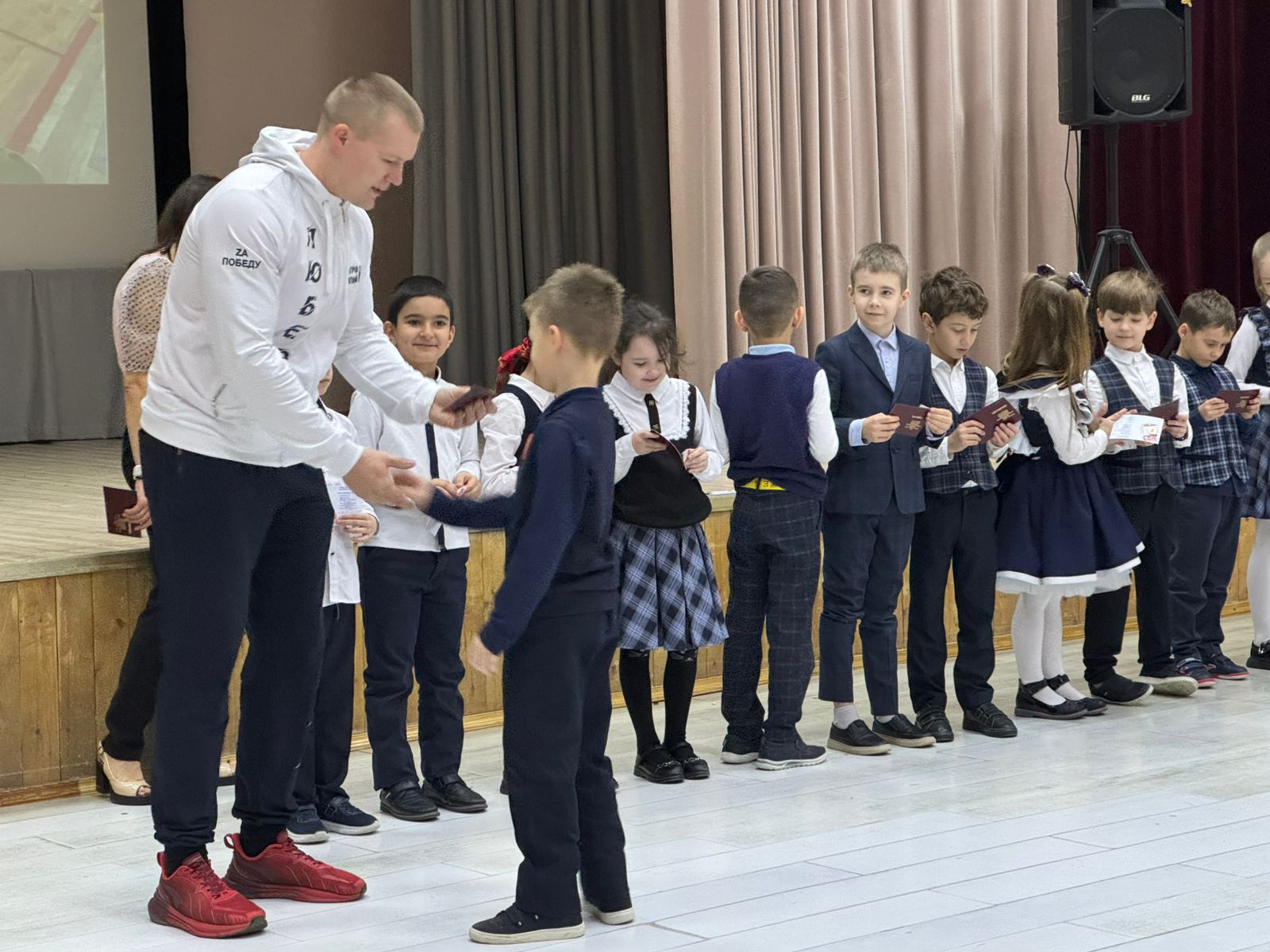 «Сегодня в школе №54 поселка Октябрьский состоялось торжественное награждение знаками отличия ВФСК ГТО первой ступени. Более 20 первоклассников получили свои первые спортивные награды за успешное выполнение нормативов «Готов к труду и обороне». Ребята проявили свои лучшие физические навыки: гибкость, ловкость, силу и выносливость. Желаю молодому поколению продолжать в том же духе, вести здоровый образ жизни, заниматься спортом и достигать новых вершин», - отметил Евгений Петров.