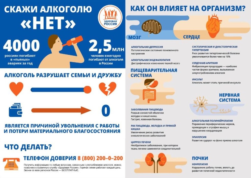 Известно, что употребление алкоголя связано с развитием более 200 заболеваний, травм, а также других нарушений здоровья, включая психические и поведенческие расстройства, к которым относятся алкогольная зависимость, тяжелые неинфекционные заболевания, такие как цирроз печени, некоторые виды рака и сердечно-сосудистые болезни.